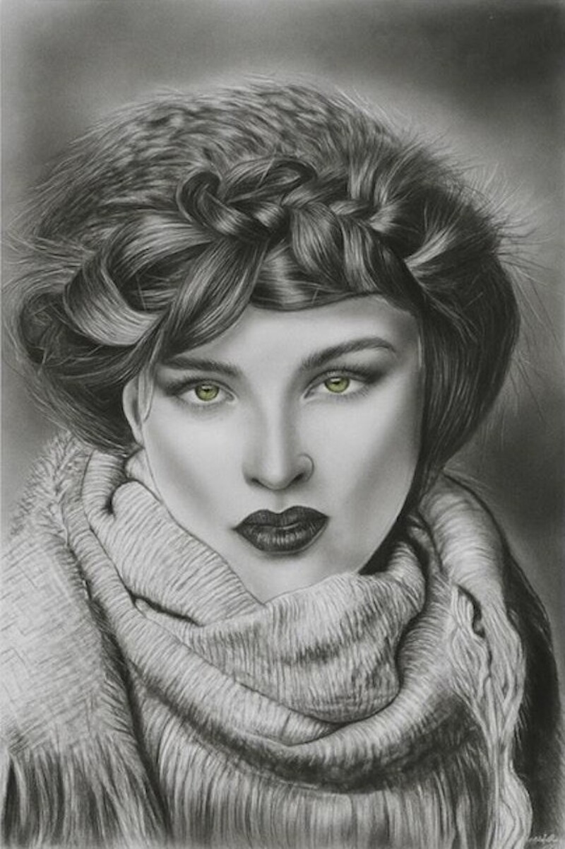 "Mirada de Esmeralda" es una obra maestra del realismo contemporáneo. En este retrato al carboncillo, exploro la profundidad de la emoción humana a través de la precisión técnica. Mi proceso se basa en un estudio meticuloso de la luz y la sombra para dar vida a texturas complejas, como el tejido del abrigo y la suavidad del cabello. El toque sutil de color esmeralda en los ojos actúa como un ancla visual, invitando al espectador a una conexión directa y profunda con el alma del sujeto. Es un equilibrio perfecto entre la fuerza del carbón y la delicadeza de la expresión.